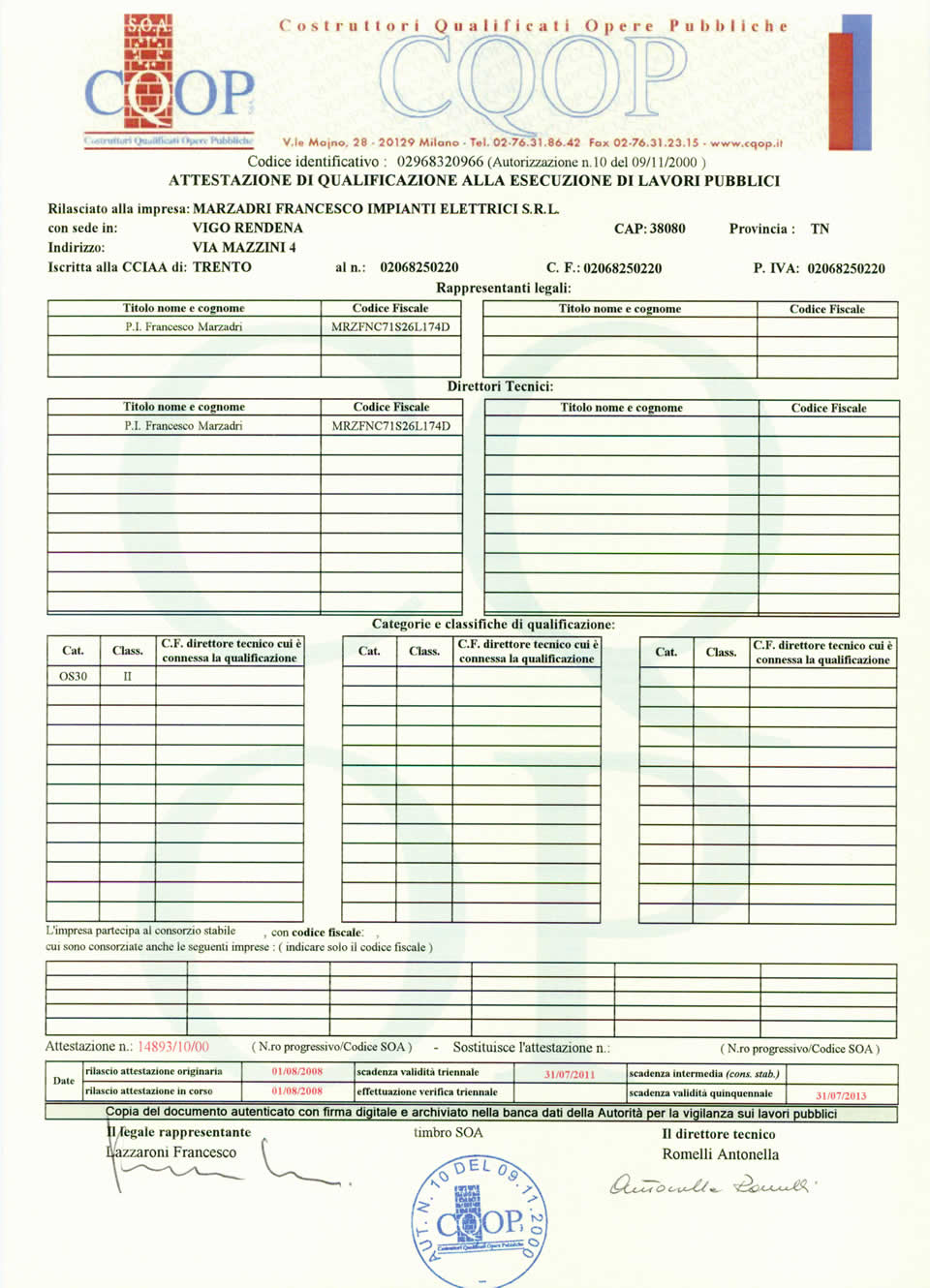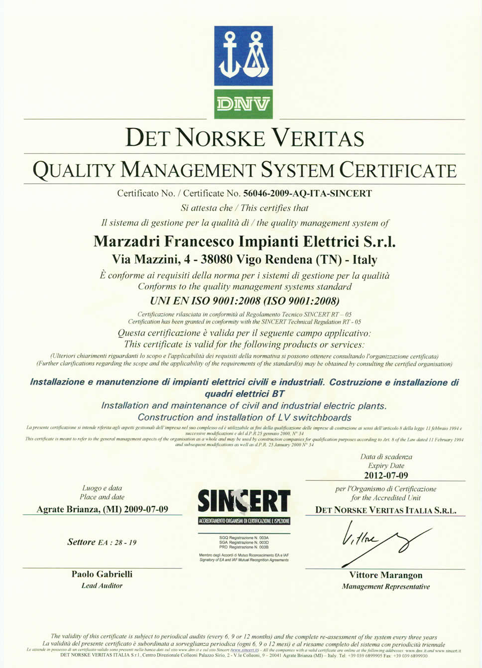 Marzadri Francesco - Impianti Elettrici s.r.l. | Via Mazzini, 4 - 38080 Vigo Rendena (TN) | Tel. e Fax 0465 801330 | Cell 348 5851581